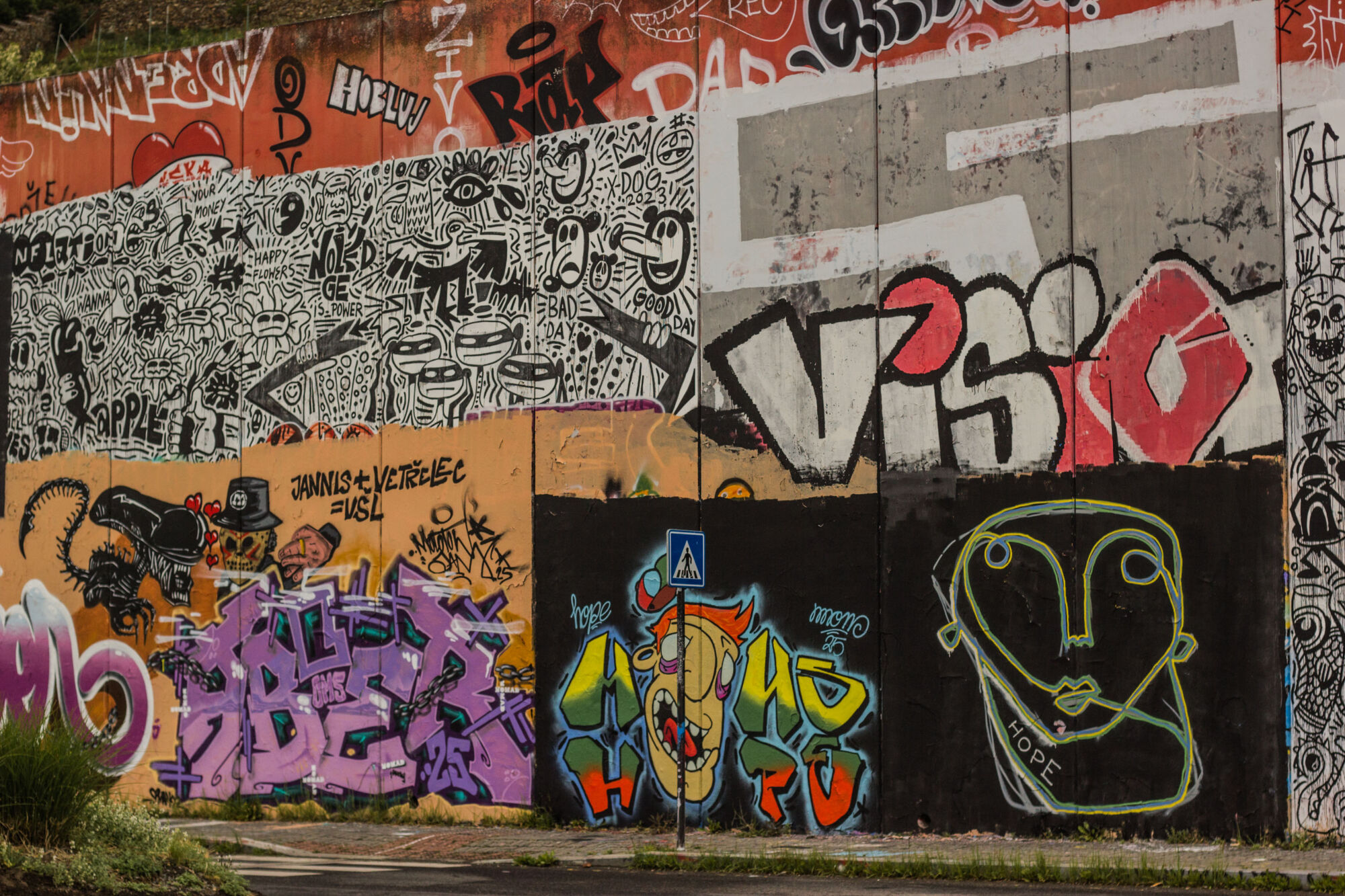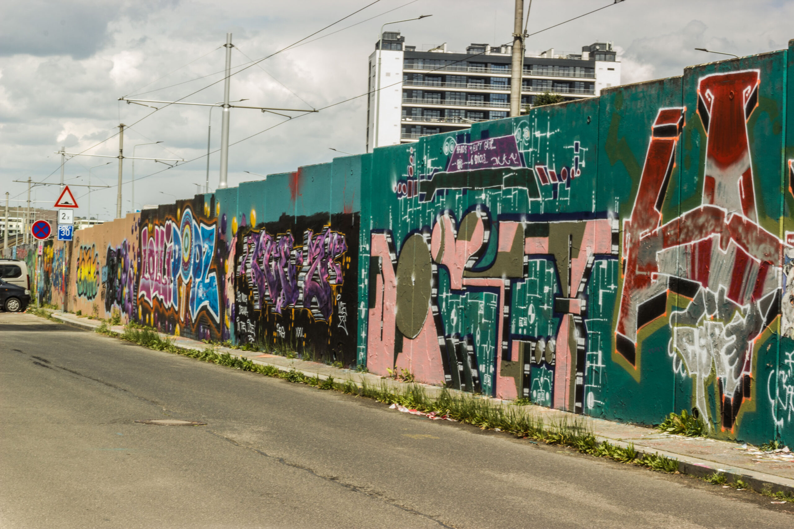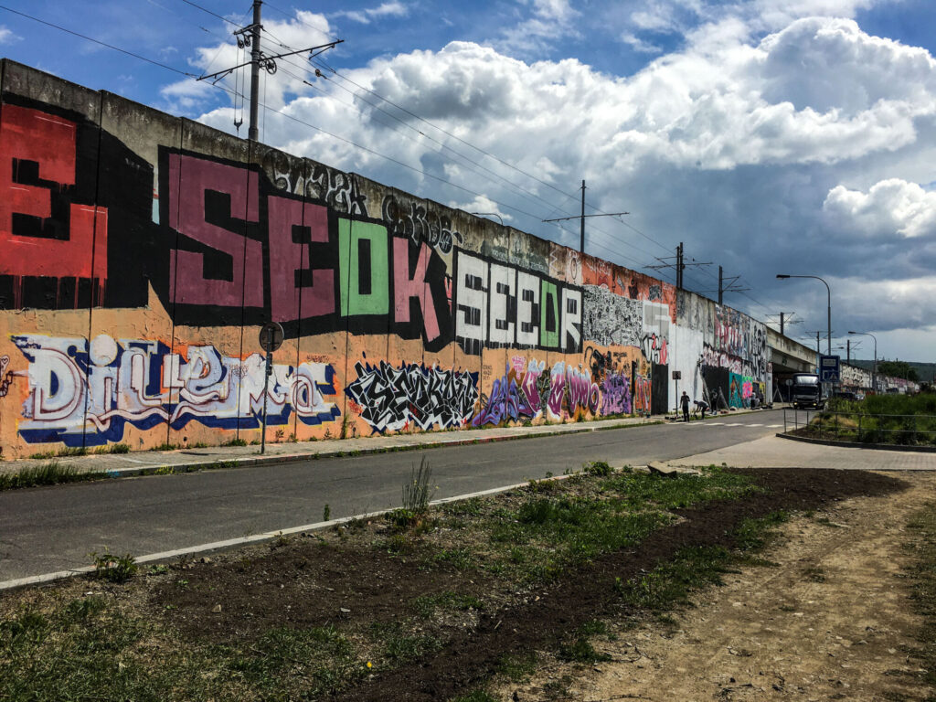 Když jsem psala článek o graffiti pro časopis Font, a fotila graffiti po Praze, objevila jsem nejzajímavější legály mezi zastávkami Belárie a Orionka, kde se nachází asi nejdelší graffiti stěna v Praze.