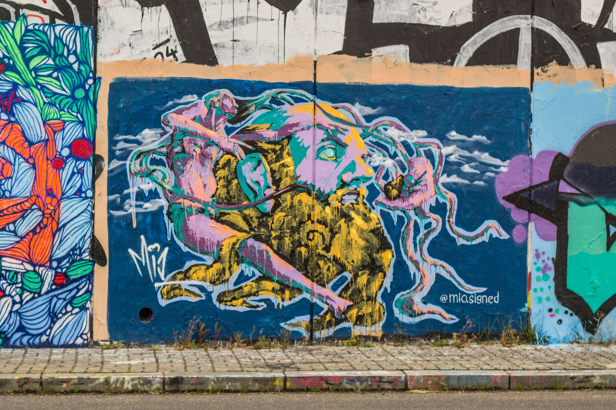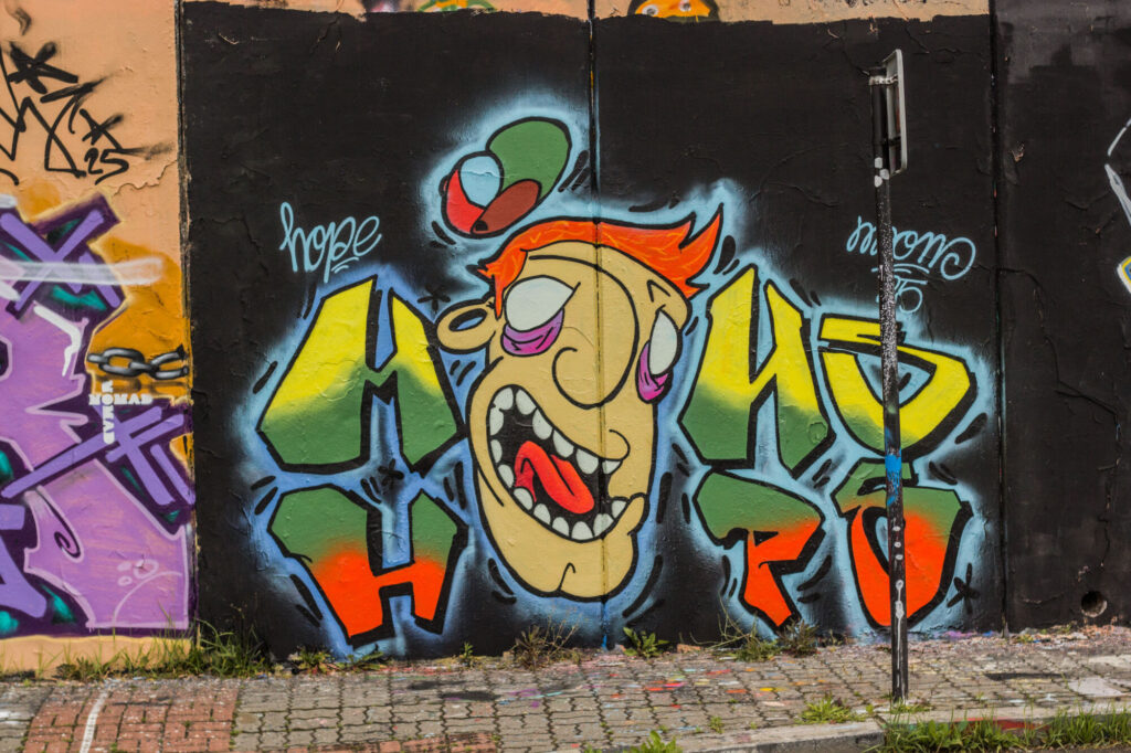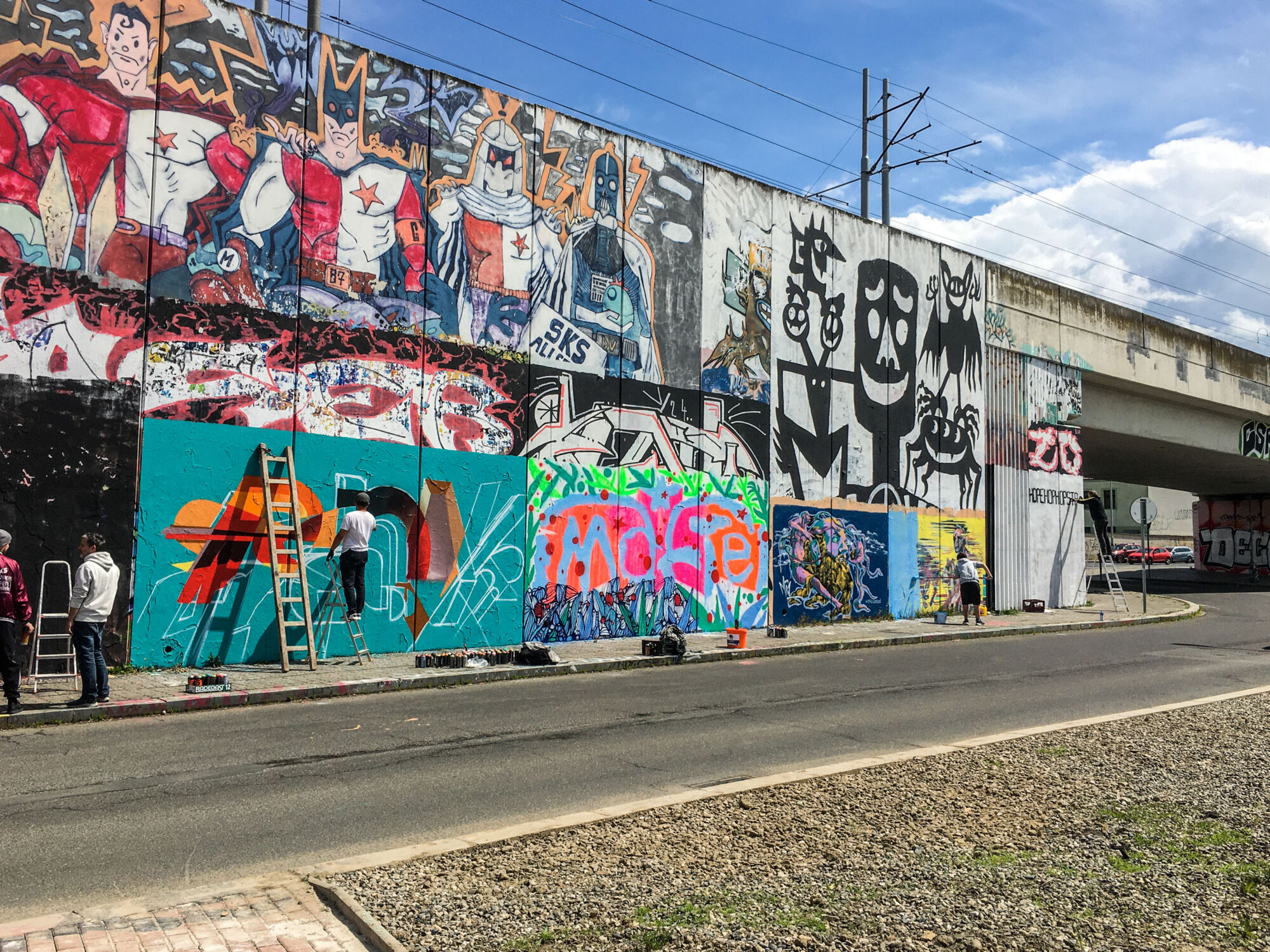 Když jsem psala článek o graffiti pro časopis Font, a fotila graffiti po Praze, objevila jsem nejzajímavější legály mezi zastávkami Belárie a Orionka, kde se nachází asi nejdelší graffiti stěna v Praze.