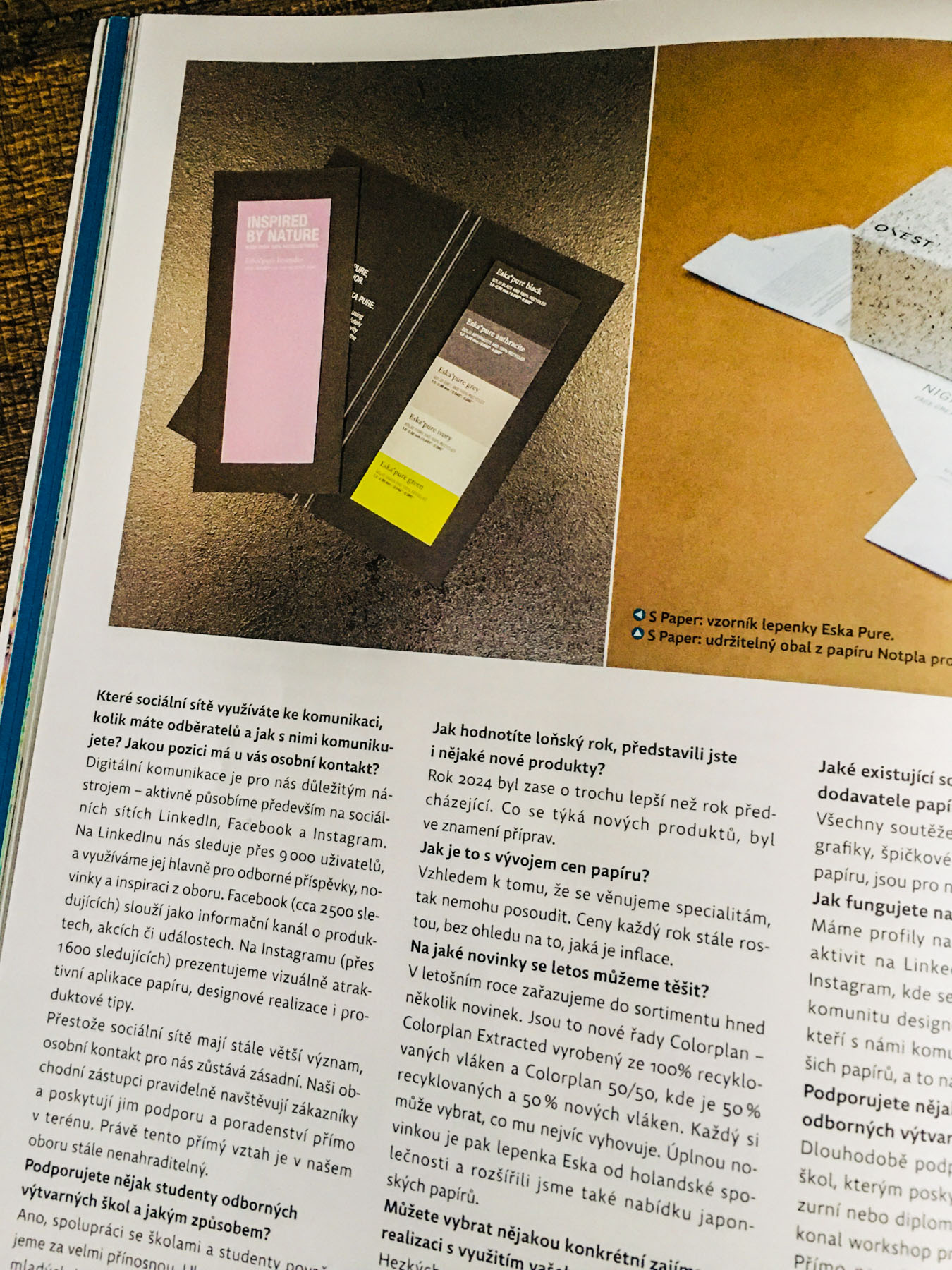 A na otázky, jak vypadá letošní nabídka papíru a o co je největší zájem, odpovídají dodavatelé papíru – Igepa CZ, Papyrus, S paper a Fedrigoni. V tomto čísle zjistíte například také: co se stalo v Brně nového, co má rádo studio Růžolící chrochtík a jaké knihy byly oceněny v jubilejním 60. ročníku soutěže Nejkrásnější česká kniha roku 2024.