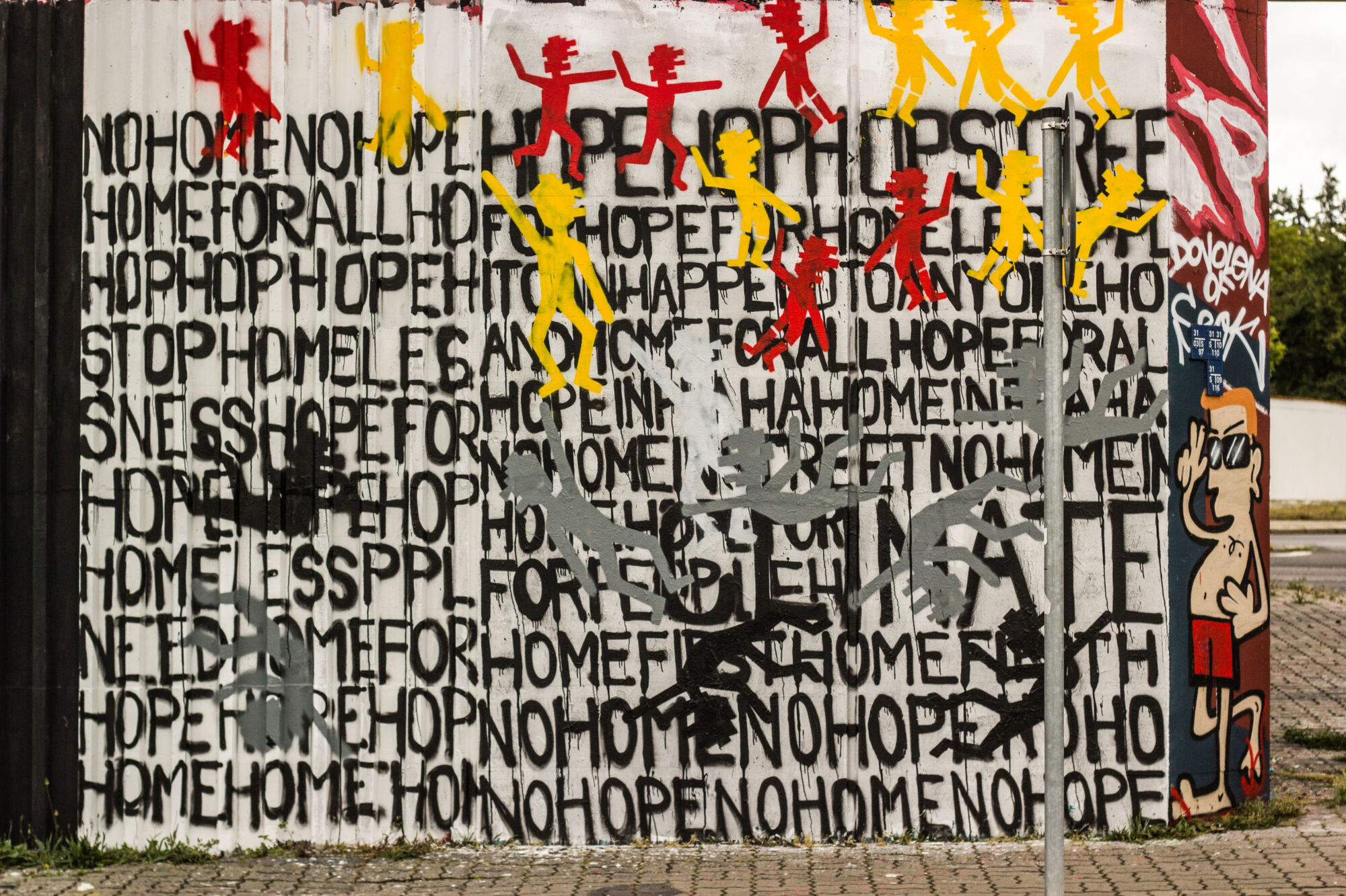 Graffiti je část vizuálního umění ulice, které si žije svým celkem rychlým tempem. Přemalovává se, vzniká a zaniká. Vrství na zdi barvy, linie, slova, pocity, sdělení o sobě a o světě.